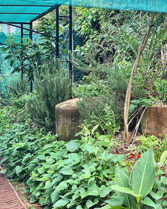 While creating this food forest with a variety of trees from fruit trees, nitrogen fixers, vegetables, ground cover, cover crops, and herb layers, I began to think about our family home's front yard too at the time. It already features a beautiful mix of old trees, flowers, plants, potted plants, rock gardens, and a small lawn, primarily designed by my dad with the staff at the time and maintained by him on weekends for the past 35 years. During the COVID-19 pandemic, as our work and consulting slowed down and we took on smaller jobs, I spent a lot of free time converting old boxes into productive edible gardens, enhancing the existing diversity. This time, I focused on growing everyday produce closer to the main house as the food forest area continued to develop. I then made short videos online, providing simple information for those interested in growing their plants and food at home during this period. Many people began gardening during the pandemic but were unsure how to start or didn't realize the upkeep involved. So, I decided to create and share these videos, which led to invitations to participate in community webinars teaching the same concepts. Eventually, I worked with a virtual sustainable academy for a few years part time until a couple years ago, teaching online permaculture, which was fantastic! The edible urban container gardens were a success, and I started growing more varieties of vegetables, catching the attention of a former colleague at Business Daily. They wanted to feature this in their gardening spread, and I agreed. It was great to showcase this and inspire people to use any available space to grow plants, flowers, and edible gardens.